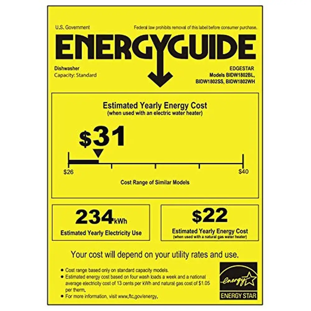 18" Compact Built-In Dishwasher 8 Place Setting Silverware Tray Leakage Sensor