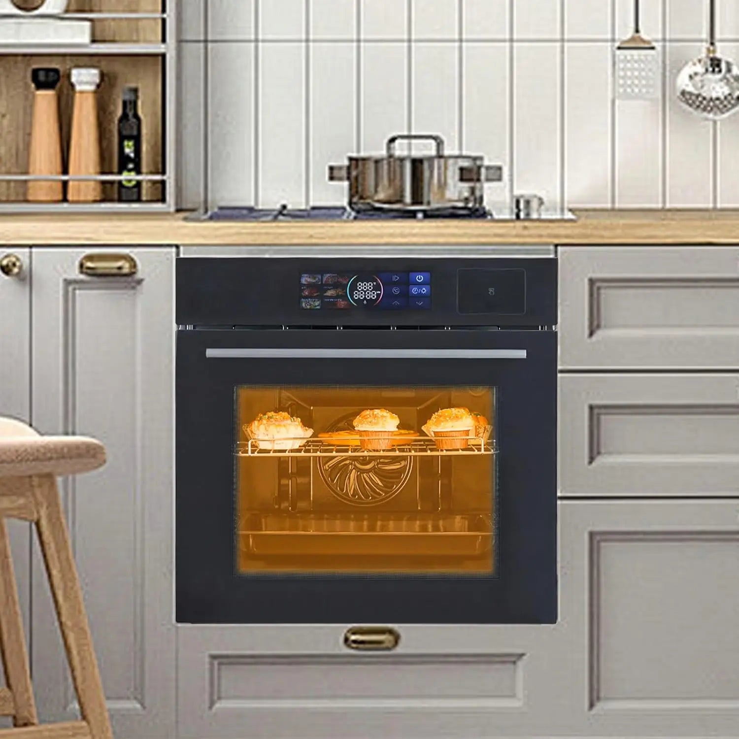 [Flexible Installation Options]: Designed for installation in high and low cabinets, the 24-inch wall-mounted oven features a modern design that complements various kitchen styles. Compatible with induction or gas stoves, this single wall oven seamlessly integrates into your kitchen setup, offering both functionality and aesthetic appeal.