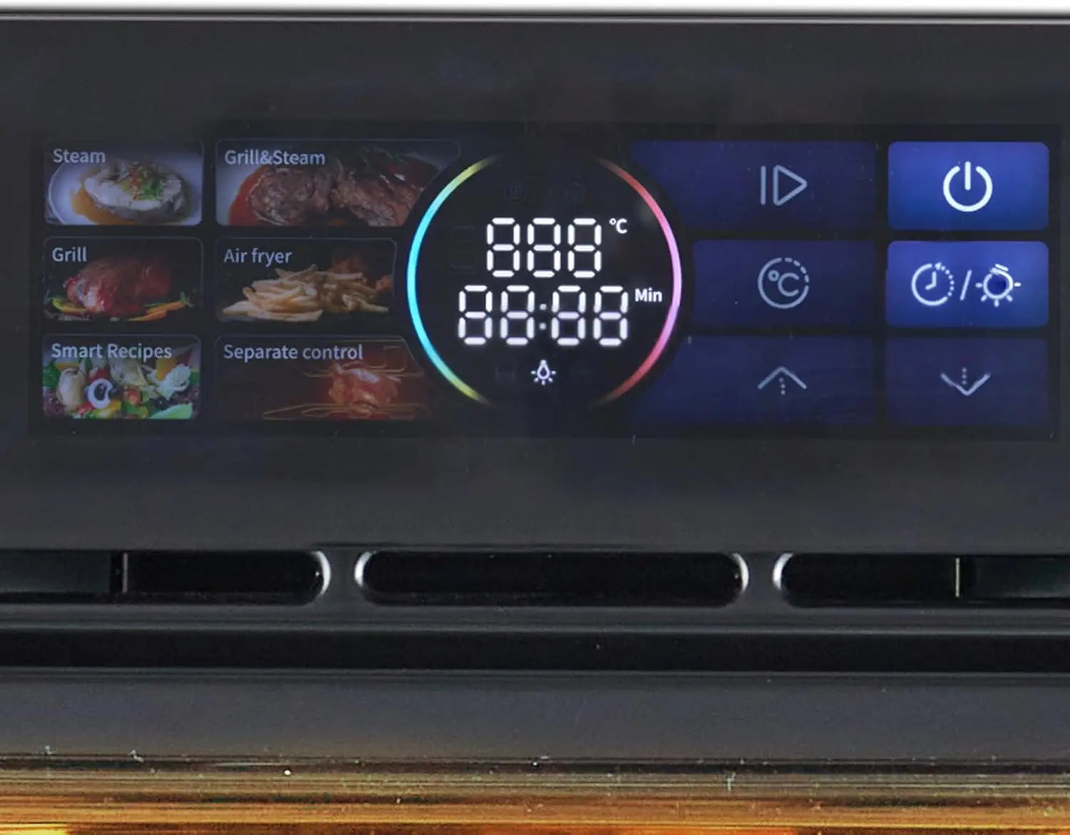 [User-Friendly Touch Screen Design]: Featuring a convenient touch screen interface, the electric wall oven is easy to operate and offers a seamless cooking experience. The built-in timer and temperature control allow for precise adjustments, with specific temperature ranges for various cooking functions such as steaming (140-230℉) and baking (212-482℉). The precise temperature control ensures optimal cooking results every time.