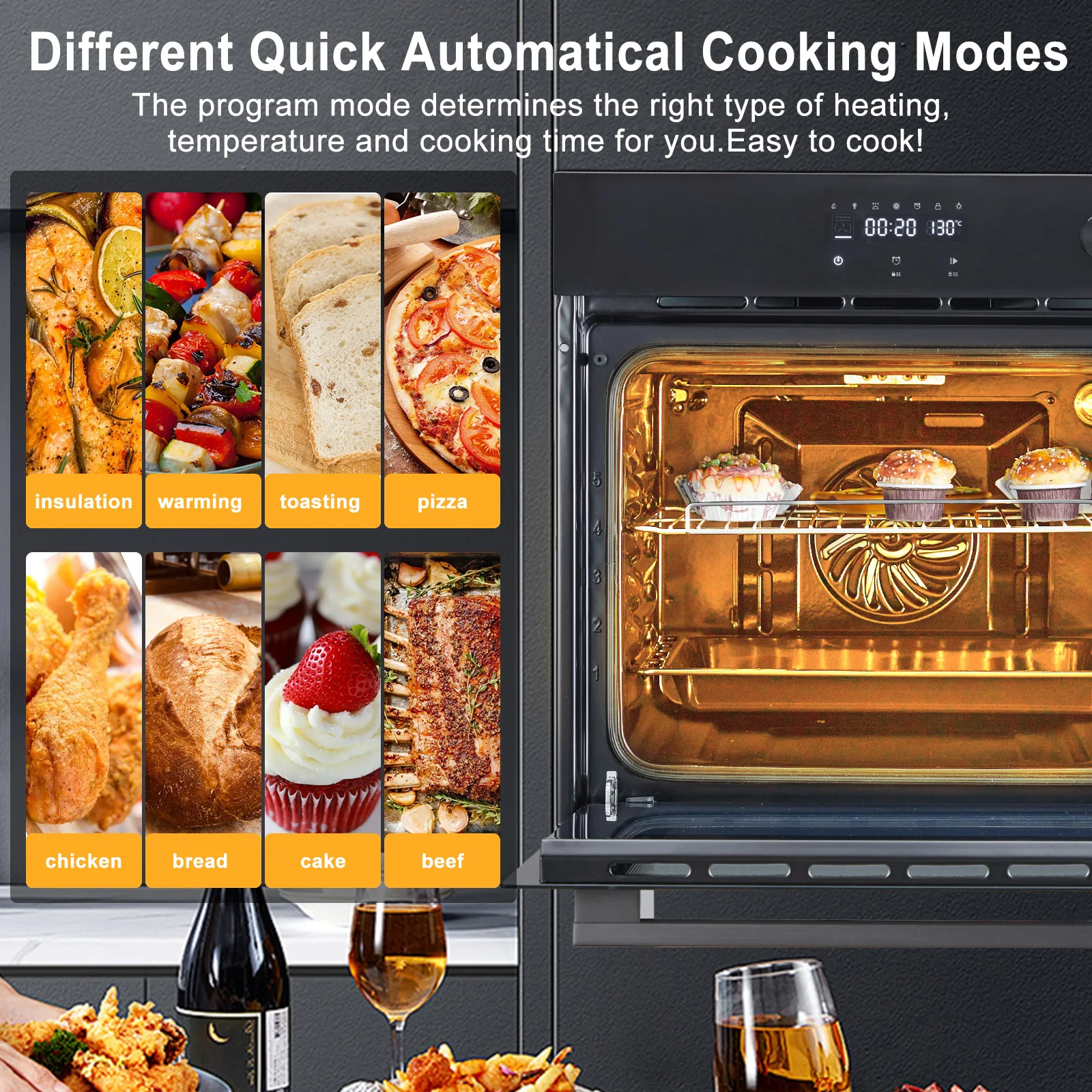 24" 2.5 Cu.ft Built-in Electric Wall Oven: 24" Steam Bake Air Fry Built-in Wall Oven for Home Kitchen