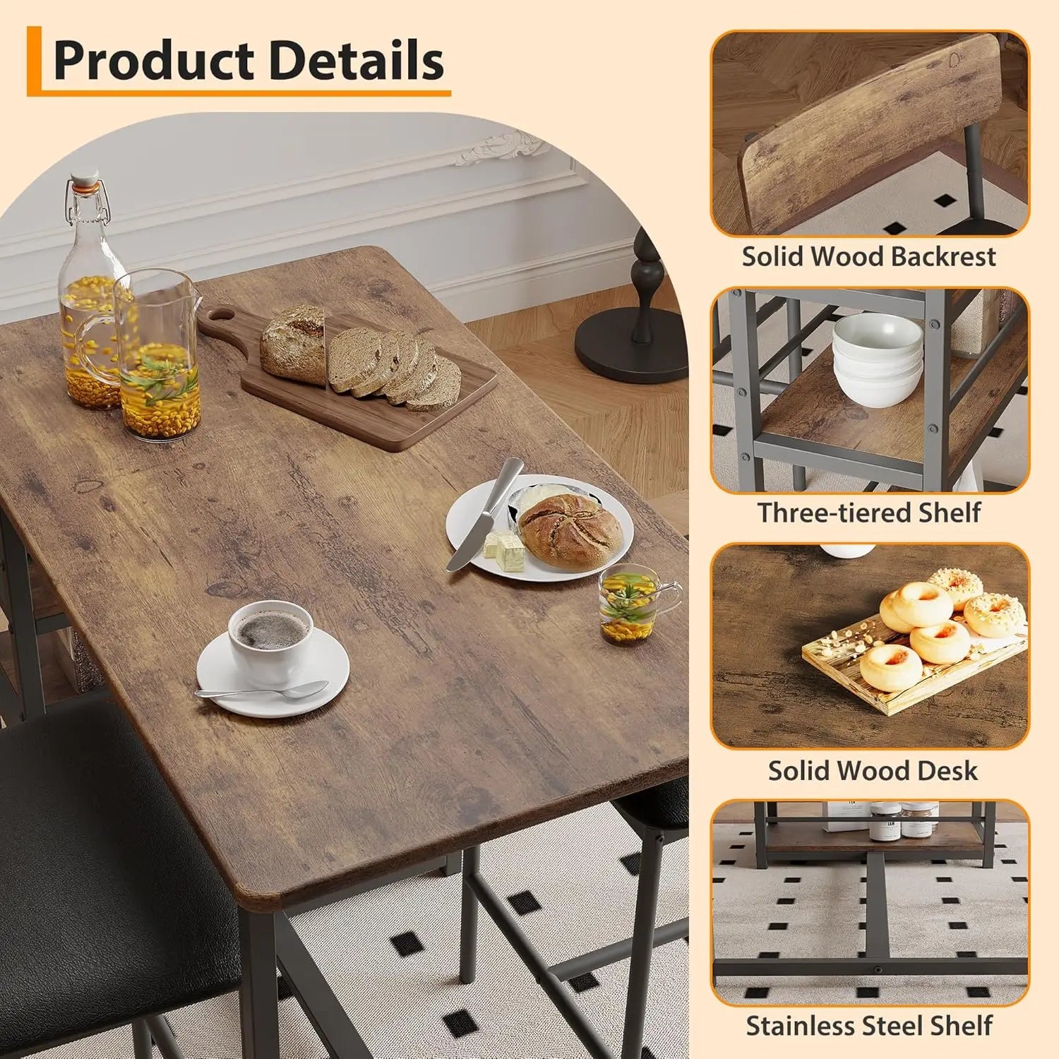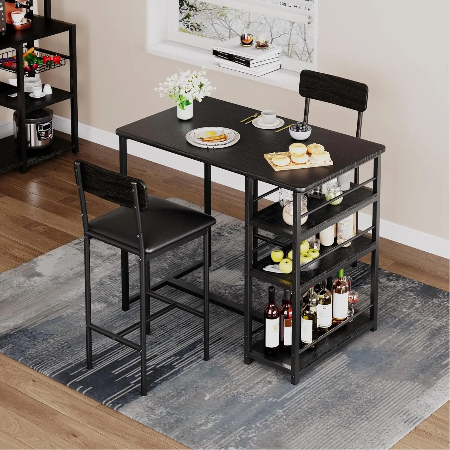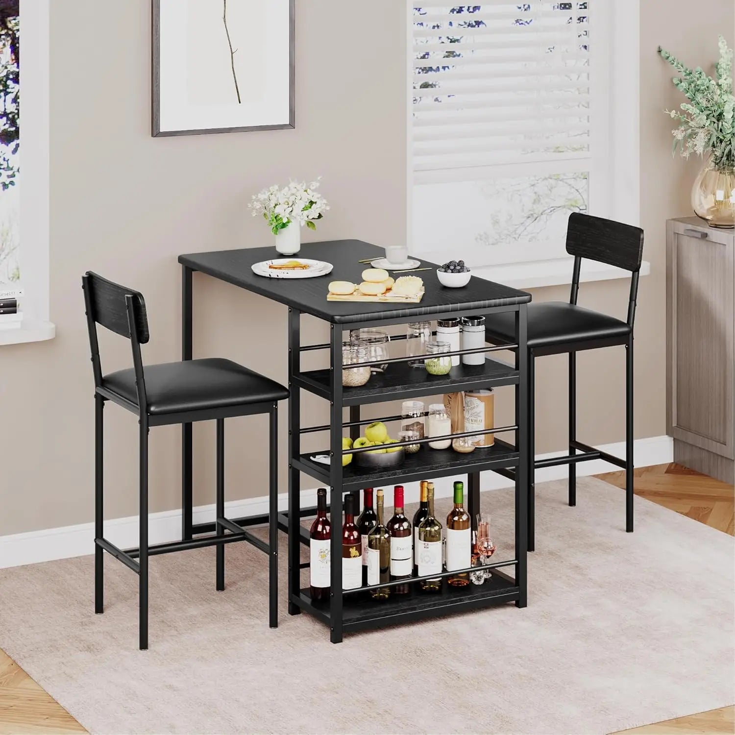 📦 SMART STORAGE DESIGN: Our dining table with storage includes 3 multi-level shelves (12", 15", 18" heights) - perfect for organizing wine bottles, cookbooks, or kitchen essentials. This bar table with storage keeps everything within reach while maintaining a clutter-free look.