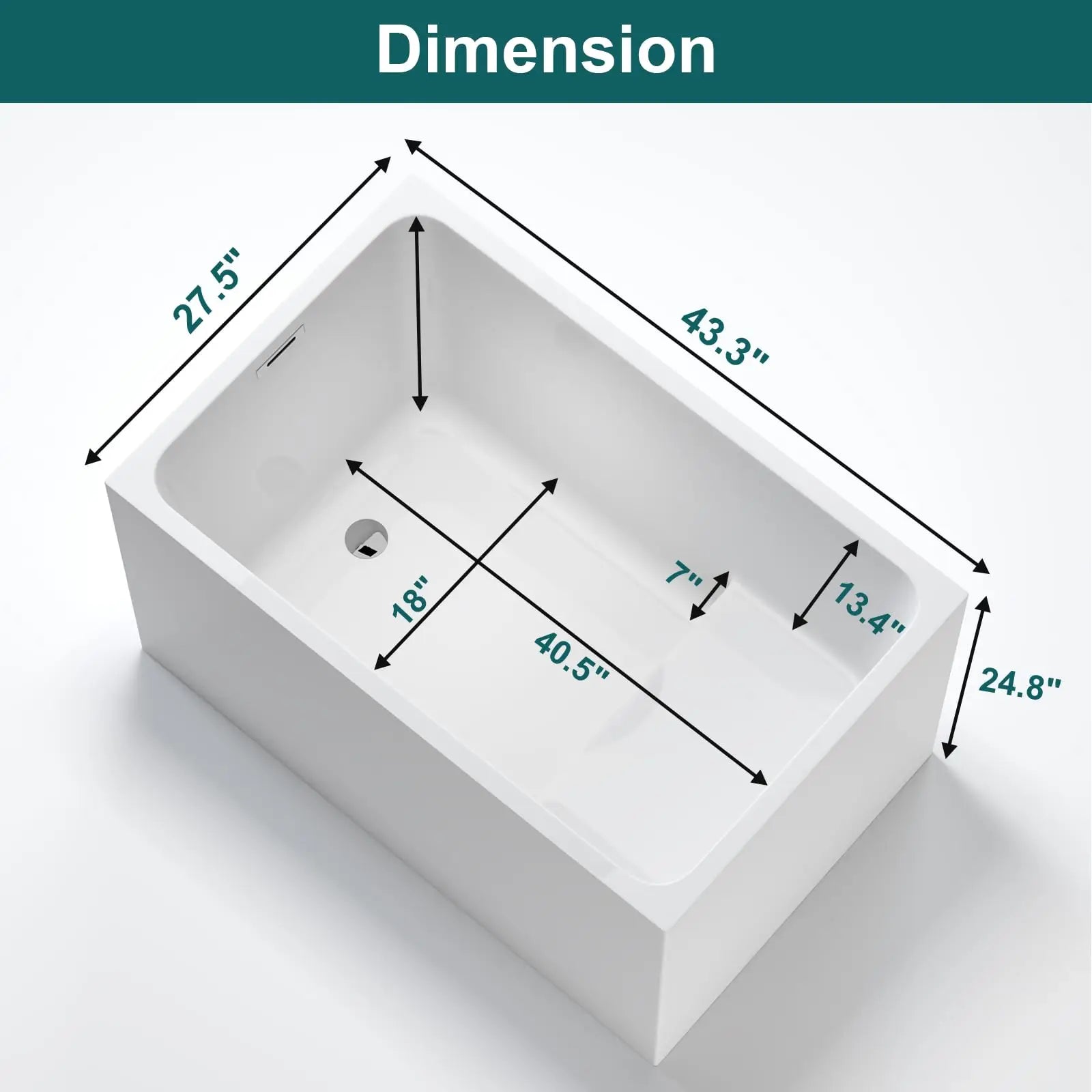 - Soaking Bathtub: The bathtub measures 43" x 28" x 25". Ideal for full body immersion in smaller spaces. This soaking bathtub is ideal for compact bathrooms, maximizing space without compromising comfort