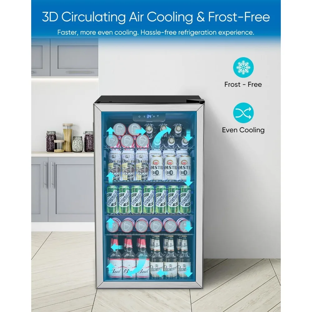 Beverage Refrigerator Cooler - 126 Can Mini Fridge Glass Door for Drinks Soda Beer Wine - Small Refrigerator for Office Bedroom