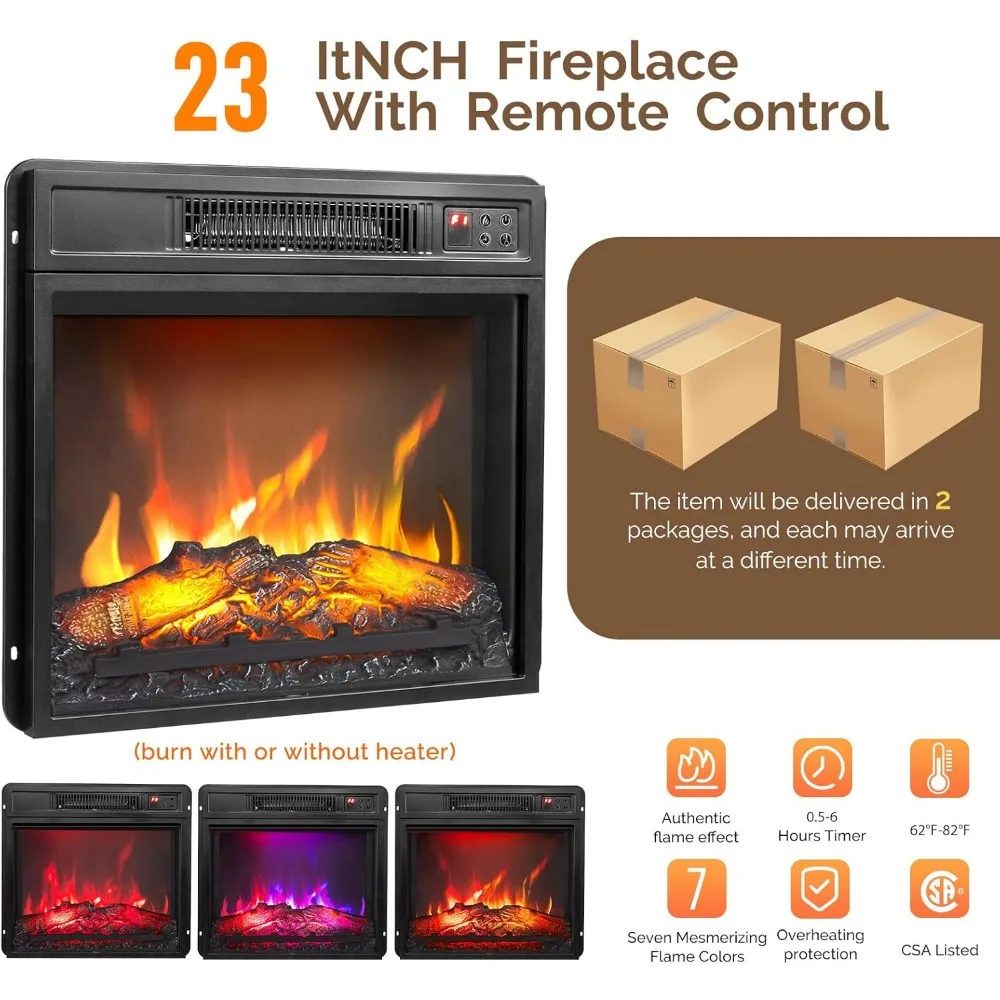 - Built-in 23” Electric Fireplace for Coziness: The Media Entertainment Center Console Table includes a built-in 23” electric fireplace insert, providing ultra-realistic flame effects and customizable warmth. Adjust the temperature (62°F to 82°F), flame brightness, and timer (0.5-8 hours) via touch buttons or remote control to create the perfect cozy ambiance.