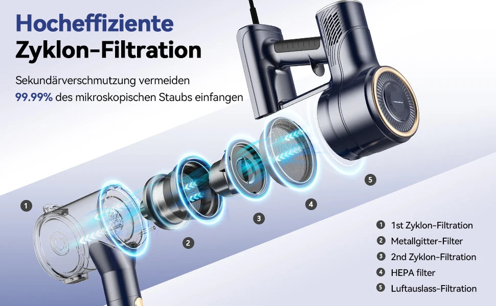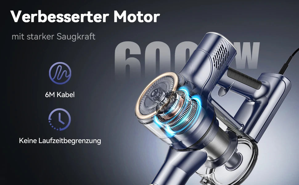 【Ultra-long battery life & 99.99% filtration】: this vacuum cleaner with wire effectively solves the problem of lack of battery life, making it the ideal first choice for large tasks and cleaning the whole house. The wire vacuum cleaner is equipped with a complete filtration system including a top mesh filter and a high-density HEPA filter that captures 99.99% of dust particles with maximum efficiency.0.8L dust container empties quickly.