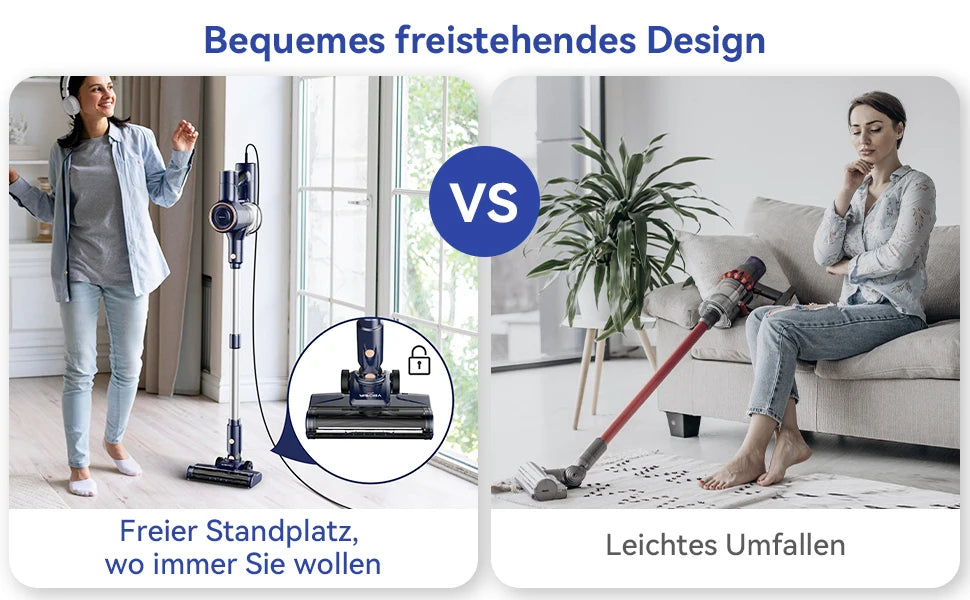 【Upgrade Roller & Freestanding】I8 bagless vacuum cleaner features a unique V-shaped design that combines rubber bristles and soft bristles to improve dust removal and reduce hair tangling. On the floor brush there is a button that allows you to remove the brush at the touch of a button, which allows you to quickly clean it. Thanks to its easy to use freestanding design, you can put the product on the floor anywhere and anytime.
