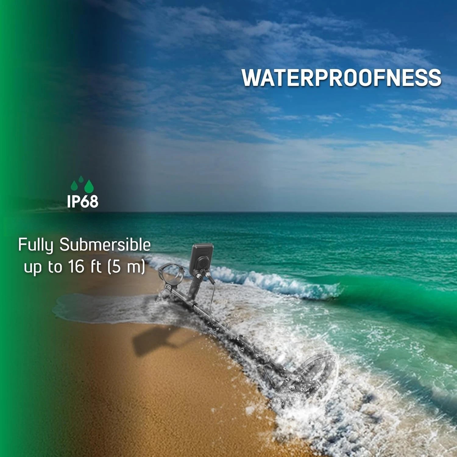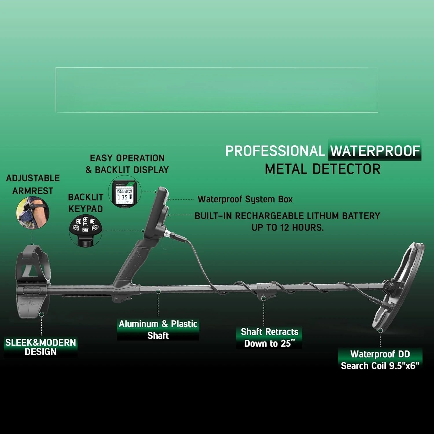 Metal Detector with 9.5” Waterproof DD Search Coil, Vibration for Detecting Underwater, Beach and All Metal Search Modes