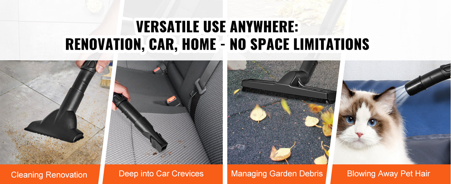2-in-1 Crevice Nozzle: With a 21.3ft cleaning reach and a brush attachment, it easily cleans various surfaces without damaging upholstery or furniture textures. The flat nozzle reaches walls and corners, leaving no dirt behind.