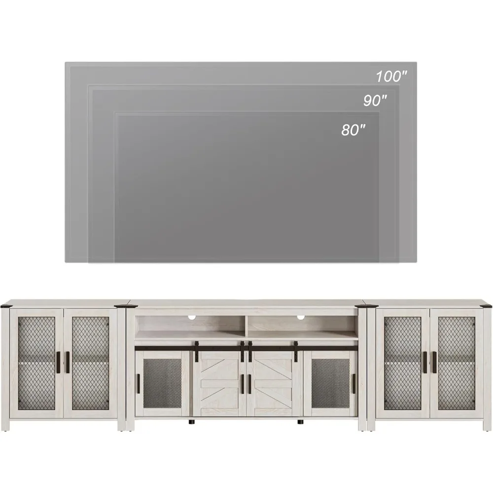 TV Stand Set for 100 inch TV,Door Storage Cabinet with Mesh Adjustable